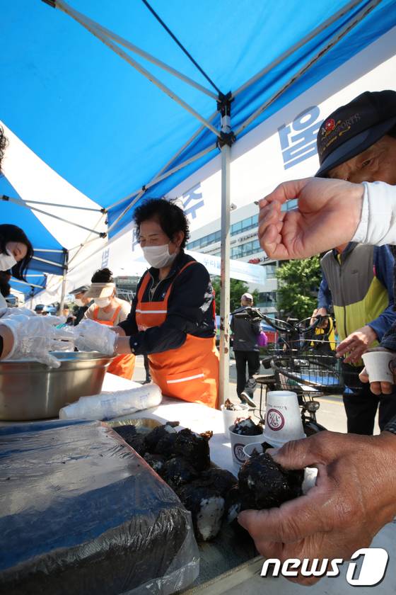 (광주=뉴스1) 황희규 기자 = 17일 오후 광주 동구 금남로 일대에서 5·18민주화운동 제42주년 전야제에 앞서 80년 5월 당시를 재현한 주먹밥 무료 나눔 행사가 진행되고 있다. 2022.5.17/뉴스1