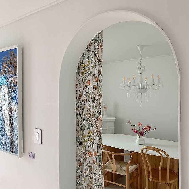 주방 옆에 있던 작은방은 문을 철거하고 아치문을 만들어 다이닝룸으로 개조했어요. 손님이 오셨을 때 식사 공간이나, 아이의 파티를 여는 공간으로 사용하려고요.