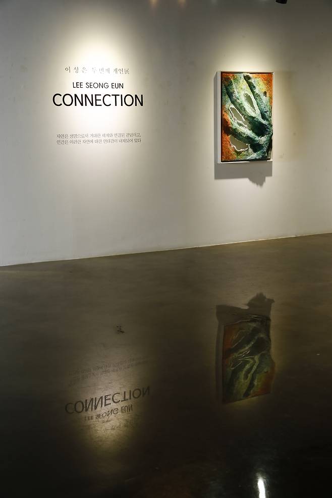 이성은 작가는 인간과 자연의 공존에 관한 시적 언어를 ‘섬유’라는 매개체를 통해 구현한다. 인간존재에 관한 실존적 물음이 첫 개인전 《Eternal Web》 이었다면, 두 번째 개인전 《Connection》(부산 한세갤러리, 3.17-3.22)은 자연존재와의 대화를 통해 ‘생동하는 자연의 법칙’을 ‘공존의 질서’속에서 이야기한다.