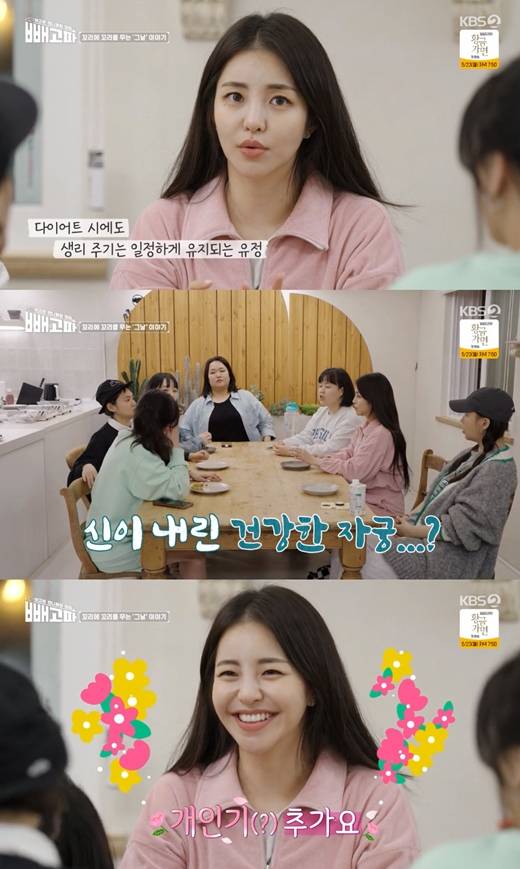 이날 고은아는 "나는 궁금했던 게 있다. 생리 주기가 어떻게 되느냐"고 물었다. 그중 유정은 "다이어트를 해도 주기가 안 좋아지거나 달라지거나 아니면 7일 이하나 이상으로 한 적이 없다"고 답해 눈길을 끌었다.