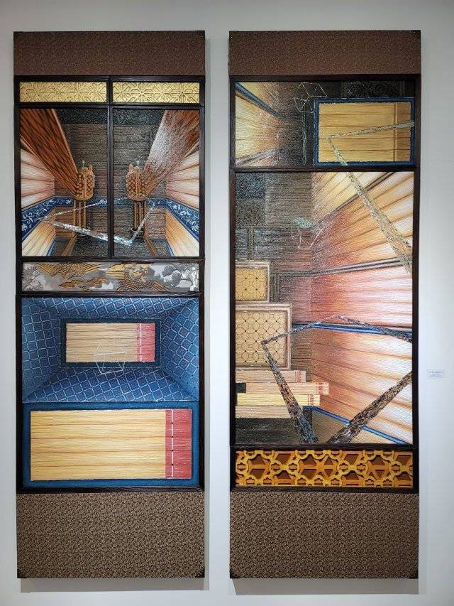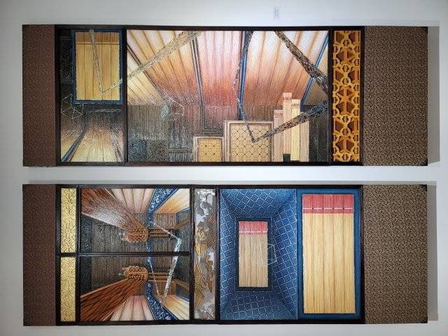 “제가 30년 전 결혼할 때 부모님께서 혼수품으로 시댁에 병풍을 보냈다. 까맣게 잊고 지내다가 남편에게 물어봐서 시댁에서 병풍을 찾았다. 병풍에는 전서체로 글씨가 써 있었는데 해석이 안됐다. 아는 지인의 도움으로 구글링을 해서 번역해보니 후한시대 학자 중장통(仲長統)의 시 ’낙지론(樂志論)‘이었다. 물질을 넘어 행복하게 사는 삶에 대해 쓴 시인데, 시집가는 딸에게 줄 수 있는 최고의 선물이었다. 이 ’낙지론‘을 내용으로 한 미디어 아트 작품을 만들어야겠다고 생각했다. 미디어아트의 주요 모티브 중의 하나는 단청이다. 우리나라 건축에서 단청은 지붕과 기둥, 면과 면을 ’연결‘해주는 무늬다. 뉴욕과 서울을 이어주는 모티브로 오방색 끝과 단청을 선택했다. 그 안에 달항아리, 빌딩, 책가도, 모란꽃과 같은 다양한 영상이 이어진다. 부모님이 사랑하셨던 옛 기물들은 그리움의 대상이고, 알루미늄이나 렌티큘러, 미디어아트 같은 소재는 현대적인 것을 상징한다.”