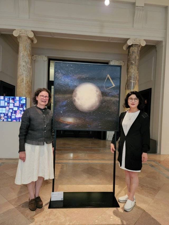 이번 전시회에서 단독 디지털아티스트로서 참가한 이돈아 작가의 작품 ’To be, Continued‘(렌티큘러 에디션)는 빈 세계박물관에 영구 소장됐다. 이돈아 작가의 디지털아트 영상작품은 전시회 오프닝 콘서트에서 상영되기도 했다. 이 작가의 ’책거리‘ 작품은 뉴욕의 마천루 빌딩과 책가도가 오묘하게 중첩돼 있는 모양이다. 전통 민화가 현대 도시의 공간으로 확장돼 재탄생한 독특한 세계다. 이 작품의 제목은 ’시공연속체(時空連續體)-Space Time Continuum‘.