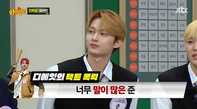 28일에 방송된 JTBC '아는 형님'에는 세븐틴의 정한, 조슈아, 준, 호시, 디에잇, 민규, 도겸, 승관이 등장한 가운데 디에잇이 멤버들에게 팩폭을 날렸다.