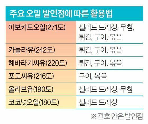 조리법에 맞추어서 알맞은 발연점의 기름을 사용하는 것이