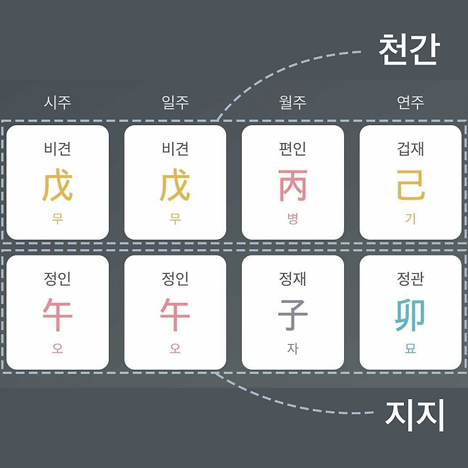 1. 천간에 병(丙), 정(丁)이 없는 경우