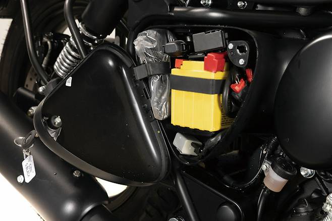 테스트 차량은 다크 블랙 컬러로 중간 트림에 해당한다. 엔진과 배기까지 블랙으로 칠해진 버전으로 특이하게 휠이 튜브방식의 와이어스포크가 아닌 튜브리스 방식의 알루미늄 캐스트 휠이 장착된다. 이 아래로 엔트리 레벨인 할시온 트림이 있고 위로는 크롬 라인이 있다. 클래식한 분위기는 조금 덜하지만 무광블랙의 차체가 꽤 멋지다.