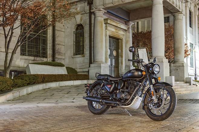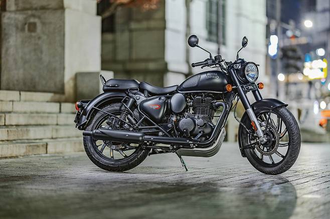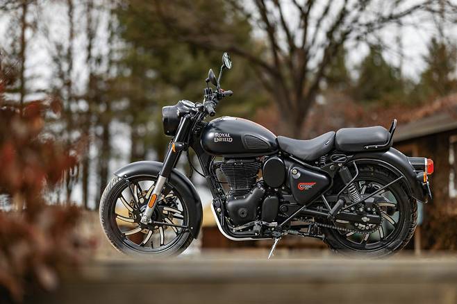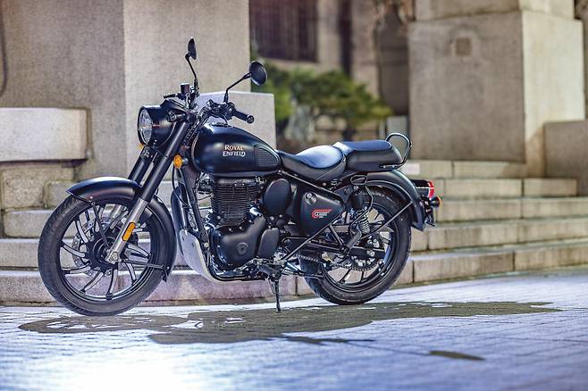 그리고 시간이 흘러 2022년에 드디어 클래식이 풀체인지 되었다. 하지만 언뜻 보기에는 뭐가 다른가 싶을만큼 비슷한 모양이다. 프레임과 엔진은 앞서 출시한 메테오350과 동일하지만 디자인은 기존의 클래식 500의 요소들을 따르고 있다. 동그란 헤드라이트와 포크를 그대로 감싸고 있는 나셀, 그 위에 장식된 계기반, 바퀴의 절반가량을 덮고 있는 철재 펜더. 통통한 연료탱크, 그리고 삼각형의 배터리 커버까지, 클래식 고유의 매력을 그대로 살리고 있다.