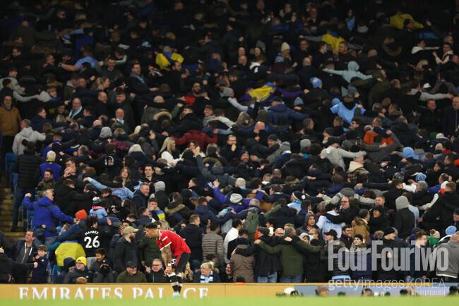맨시티 선수들은 여유가 있었다. 2골 차 여유로운 리드 상황에서 맨시티 특유의 공 돌리기가 나왔고, 후방에서부터 짧은 패스를 주고받으며 안정적으로 빌드업했다. 이때 맨시티 팬들은 선수들이 공을 터치할 때마다 ‘환호성’을 지르면서 분위기를 뜨겁게 만들었다.