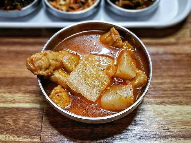 [식신TIP] 아파트 상가 푸드코트에 있는 작은 가게지만 항상 손님으로 북적이는 곳. 부침개, 해조류 반찬, 회무침, 생선구이, 탕까지 남도의 맛을 제대로 느낄 수 있는 한상! 상가 주차 자리에 2시간 무료 주차가 가능해요.