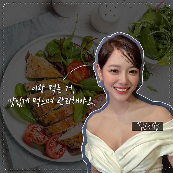 만인에게 사랑 받는 여배우 신세경 역시 이와 같은 방법으로 몸매를 관리하고 있는데요. 신세경은 자신이 운영하는 유튜브 채널을 통해, 쉽고 간단하게 만들 수 있는 건강식 레시피를 구독자들에게 공유한 바 있습니다. 그는 “식단을 과도하게 제한하면 굉장히 지루하다”고 밝히기도 했죠.