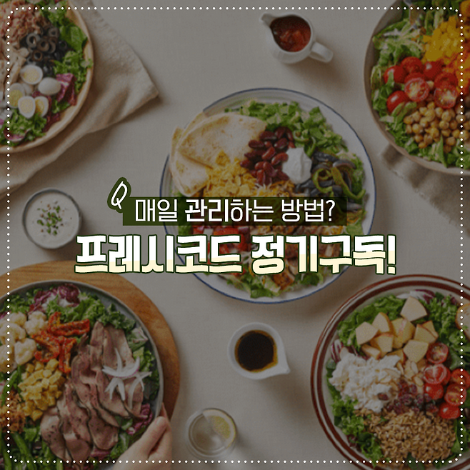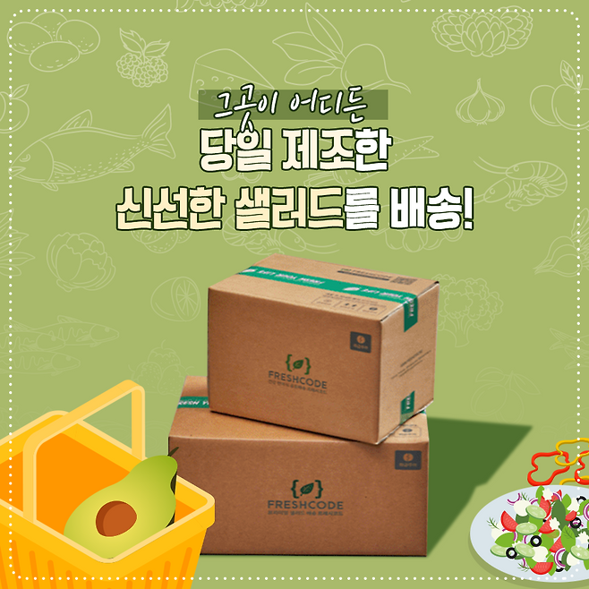매일매일 다른 샐러드를 집, 혹은 회사에서 즐길 수 있을 테니까요. 그곳이 어디든, 가장 신선한 상태의 샐러드를 손쉽게 받아볼 수 있습니다. 집이나 회사에서 받기가 어려운 상황이라면, 배송비 무료인 프레시코드만의 배송 서비스, '프코스팟'을 통해 간편하게 픽업할 수 있으니 이 또한 이용해 보시길 추천드려요.