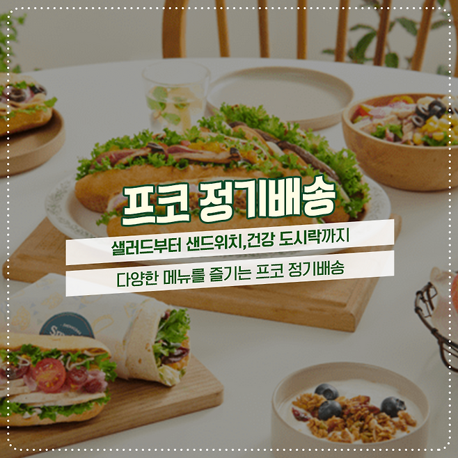 샐러드 이외에도 이번에 새로 출시된 바게트샌드와 도시락 등 다양하고 맛있는 메뉴를 함께 즐길 수 있는 정기구독 이벤트도 함께 진행하고 있어요. 샐러드만 먹기 지루하다면, 샌드위치 또는 도시락과 함께 즐겨도 부담 없는 한 끼 식사를 건강하게 해결할 수 있으니 더욱 좋겠죠!
