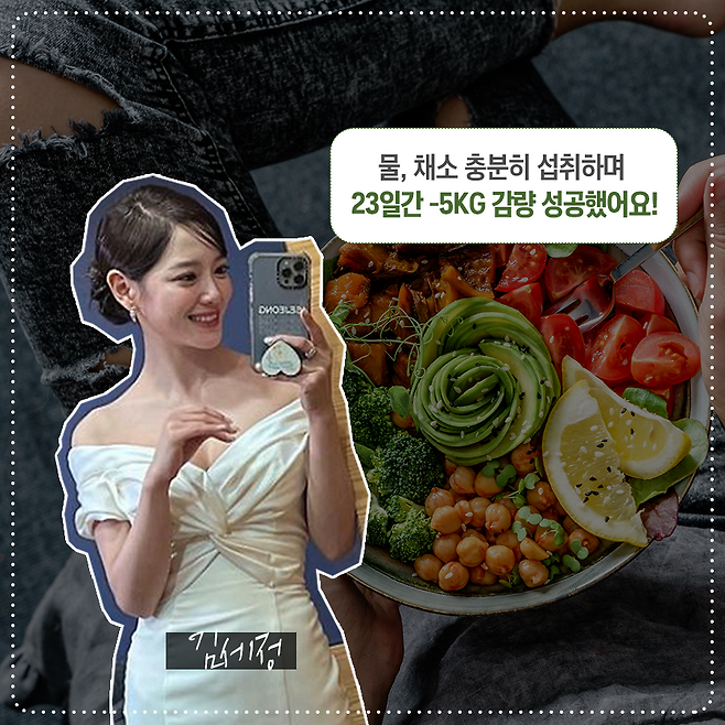 최근 MBC 연예대상에서 자리를 빛낸 가수 김세정은 5kg을 감량하여 더욱 슬림해진 실루엣을 자랑한 바 있는데요. 김세정은 드라마 ‘사내맞선’을 준비하며 23일간 혹독한 다이어트에 나섰다고 해요. 가장 먼저 디톡스를 시도했지만, 이내 건강한 음식 위주로 식단을 꾸렸는데요. 마르기만 한 몸이 아니라 탄력 있고 예쁜 몸매를 위해, 탄수화물을 줄이고 채소 위주로 섭취했다고 합니다. 각종 채소를 버무린 샐러드 이외에도 미역으로 만든 국수, 곤약면 등 저칼로리 면식으로 대체하여 균형 잡힌 식단을 꾸몄어요.
