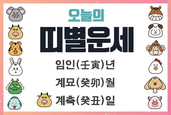 오늘은 임인(壬寅)년, 계묘(癸卯)월이고, 일진(日辰)은 계축(癸丑)입니다.