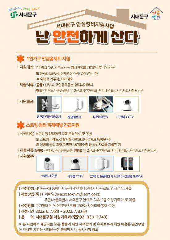 올해 구는 안심홈세트 외에도 ‘스토킹 범죄 피해예방 안전물품’ 지원을 서대문구가족센터와 함께 추진한다.