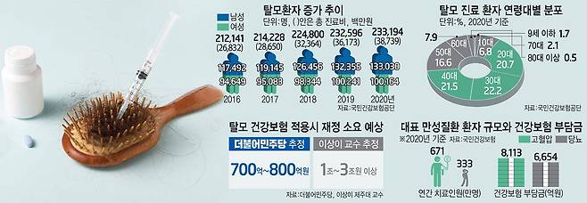 지난 2020년 탈모로 병원을 찾은 환자는 23만3194명이다. 이 숫자는 매년 증가하고 있다. 병원을 찾지 않는 잠재적 환자까지 포함하면 실제 국내 탈모 인구는 훨씬 늘어날 것이라는 게 중론이다. 특히 최근 탈모 고민을 호소하는 2030세대도 적지 않다.