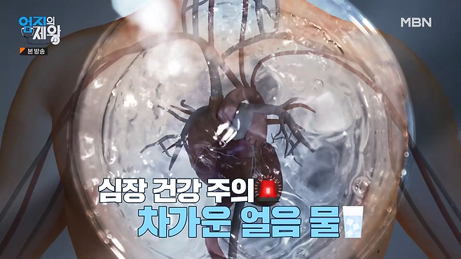 과도한 얼음 물은 체온 저하로 심장에 부담을 준다고 하네요.