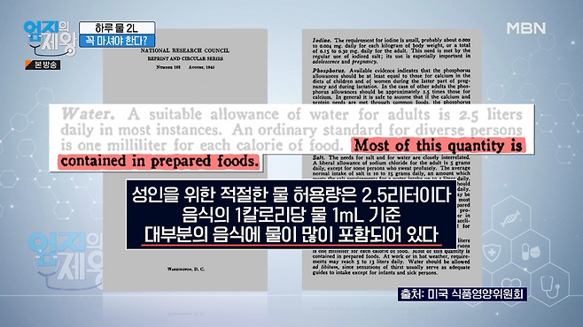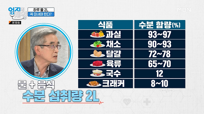 우리가 하루에 먹는 대부분의 음식에 물이 이미 많이 포함되어 있기 때문이죠.