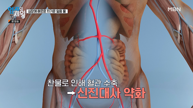 찬물로 인한 혈관 수축으로 위장 운동이 저하돼 소화불량으로 이어집니다.