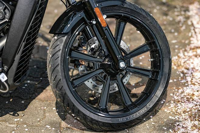 649mm의 낮은 시트고에 어깨높이로 치켜든 손, 그리고 다리를 길게 뻗는 풋패그가 다소 건방지지만 스타일리시한 포지션을 만들어낸다. 다만 사진보다 실물의 사이즈는 조금 길고 낮지만 살짝 작게 느껴진다. 헤드라이트는 고전적인 할로겐 방식을, 방향지시등에는 LED를 기본으로 사용한다.