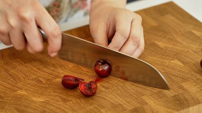 1. 체리는 씨를 빼고 반을 잘라서 준비한다.