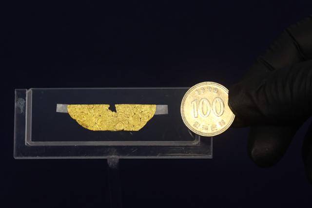 아래 사진은 100원짜리 동전과 금박을 비교한 모습.