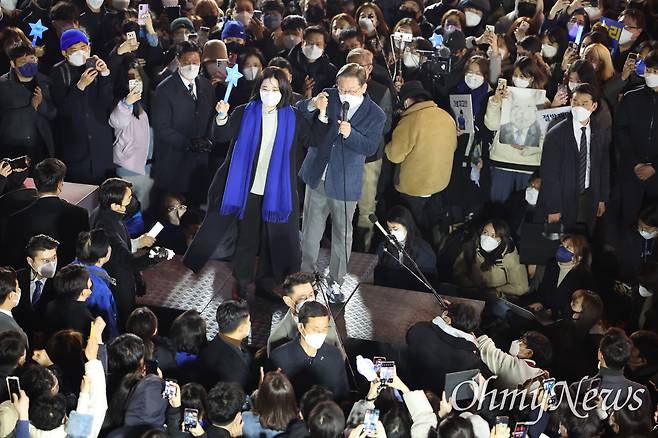 | ▲ '추적단 불꽃' 활동가 출신인 박지현 디지털성범죄 특별위원장이 8일 서울시 마포구 홍대 걷고싶은거리 광장무대에서 열린 더불어민주당 이재명 대선후보의 마지막 유세에서 지원유세를 하고 있다. |