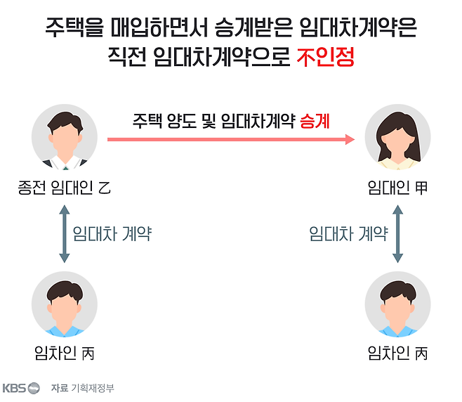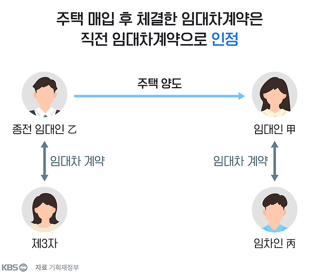 '직전 임대차 계약'은 주택 취득 후 임차인과 새로 체결한 계약을 말합니다. 이 때문에 주택을 매입하면서 임대차계약을 승계받은 경우에는 이를 직전 임대차 계약으로 보지 않습니다. 예컨대 전세를 끼고 집을 산 사람이 전 주인이 맺은 전세 계약을 이어받은 뒤 다음 전세 계약 때 전세금을 5% 이내로 올려받는다 하더라도 상생 임대인 혜택은 받을 수 없습니다.