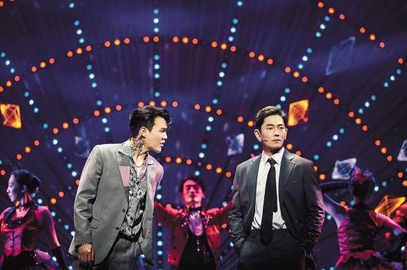 작품에서 눈에 띄는 변화를 보이는 캐릭터는 조직폭력배이자 태수의 친구로 나오는 ‘야망남’종도다. 종도는 1막과 2막에서의 변화가 상당하다. 1막에선 뒷골목의 흔한 조직폭력배였다면, 2막에선 ‘카지노 대부’를 꿈꾸며 야비한 짓을 서슴치 않는 인물로 나아간다. 윗사람에게 굽신거리며 아부하는 종도의 성향은 목에 새겨진 ‘잉어 문신’으로 구체화됐다. 김 디자이너는 “1980년대 시대 분위기와 당시 디자인을 많이 찾아봤고, 문신으로의 의미에 대해서도 알아봤다”며 “잉어 문신은 1인자가 되고 싶어 부화하는 모습을 상징한다. 보통 조직의 부하들이 많이 하는 것이라 종도의 목에 넣게 됐다”고 말했다.
