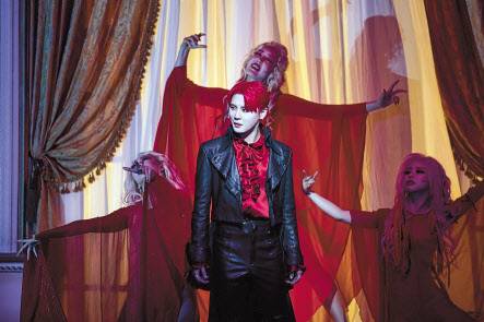 이 작품에 등장하는 ‘뱀파이어 슬레이브’역할의 세 배우도 관객을 압도한다. 화려한 금발 머리에 속눈썹을 빨간색과 검은색으로 두 개씩 붙인다. 방금 피를 마신 뱀파이어의 모습을 살리기 위해 붉은 입술을 일부러 번지게 그렸다. “피를 갈구하는 존재들의 모습을 부각하기 위한 방법”이다.