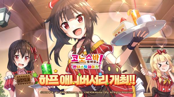넥슨은 모바일 RPG '코노스바 모바일 판타스틱 데이즈(이하 코노스바 모바일)'의 서비스 6개월을 기념해 하프 애니버서리 이벤트를 진행한다.