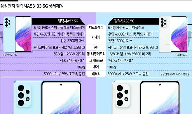 삼성전자는 17일 '삼성 갤럭시 A 이벤트 2022'(Samsung Galaxy A Event 2022)를 열고 갤럭시A53 5G와 갤럭시A33 5G를 공개했다.