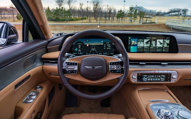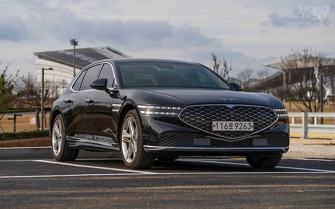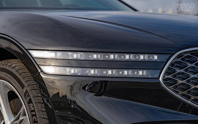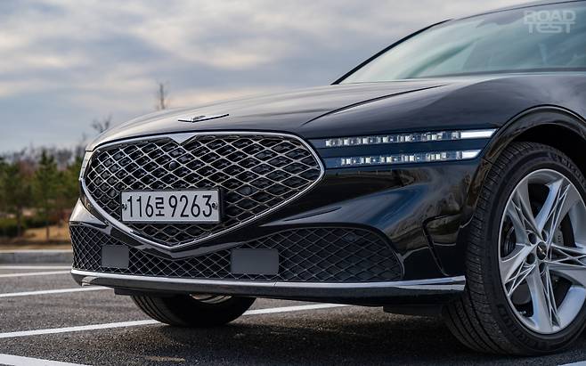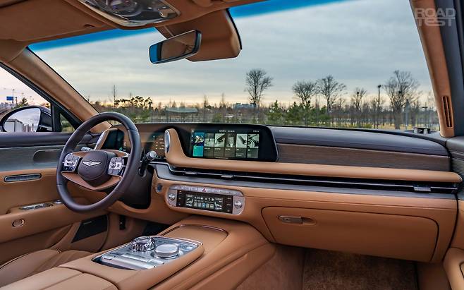 디자인도 마음에 든다. 구형 G90의 외모엔 굵직한 선과 각이 많아 ‘회장님 차’ 이미지가 강했다. 반면 신형의 얼굴을 보면 강가에서 주운 조약돌이 떠오른다. 클램 쉘 타입 보닛으로 절개선을 줄이고, 주름도 반듯하게 다려 인상이 부드럽다. 역대 제네시스 중 가장 가느다란 헤드램프에선 속도감도 드러난다. 사무실이 아닌 젊은 부부의 결혼식장 앞에서도 어색하지 않다.