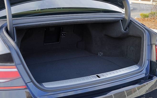 몇 없는 단점은 ‘트렁크 용량’이다. 짐을 꺼내드리려고 트렁크를 열었는데, 예상보다 공간이 좁아 놀랐다. G90의 적재 용량은 410L. 구형보다 74L나 줄었다. 감히 이유를 추측하자면, 리어 시트 편의장비와 에어 서스펜션, 후륜 조향 장치가 빽빽하게 들어선 탓일 수 있다.