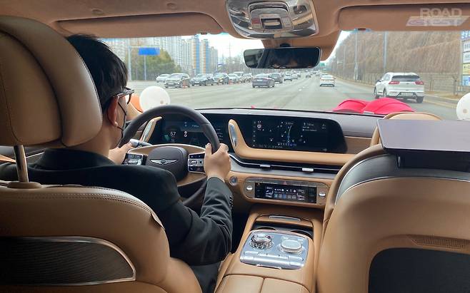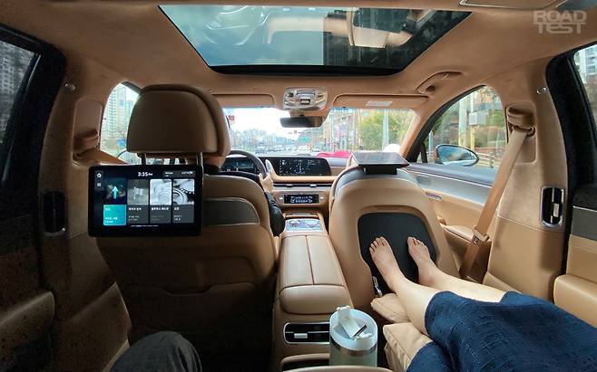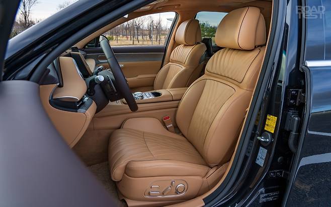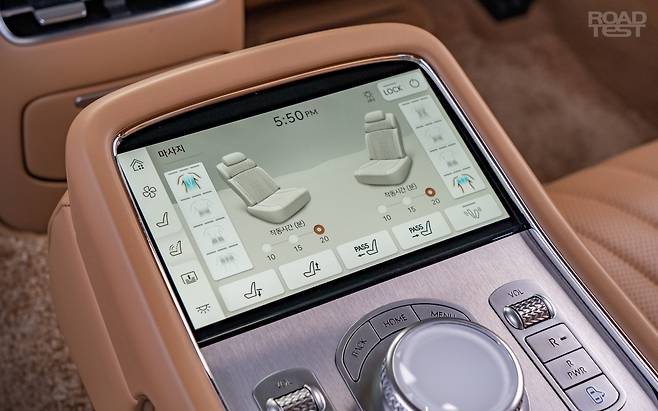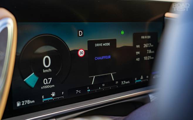 즉, 쇼퍼 모드로 달리면 1열 승차감을 희생해 2열 환경을 최적화한다는 뜻이다. 그러나 이를 운전자가 체감하기는 어렵다. 여전히 노면 굴곡을 잔잔하게 포장하는 실력이 감탄스럽다. 시속 100㎞를 넘어서면 차체를 살짝 낮추며 주행 안정감도 더한다. 노면을 미리 읽어 충격에 대응하는 ‘프리뷰 전자제어 서스펜션’과 ‘에어 스프링’이 완벽한 궁합을 이룬다.