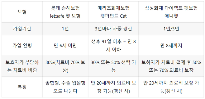 고양이 펫 보험 3가지