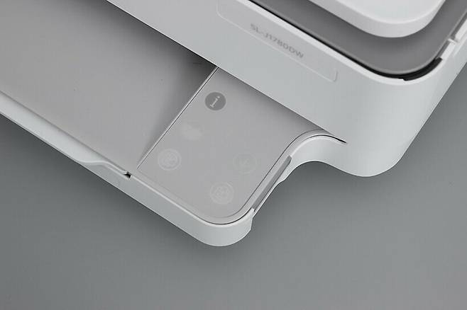 삼성전자 잉크젯 복합기 SL-J1780DW에는 에지 라이팅 이외에도 몇몇 부분에 상태등이 제공되는데, 조작부 바로 옆에 있는 상태등은 설정과 다른 용지가 들어있거나 용지에 문제가 생긴 것을 알려주는 용지함등이다.