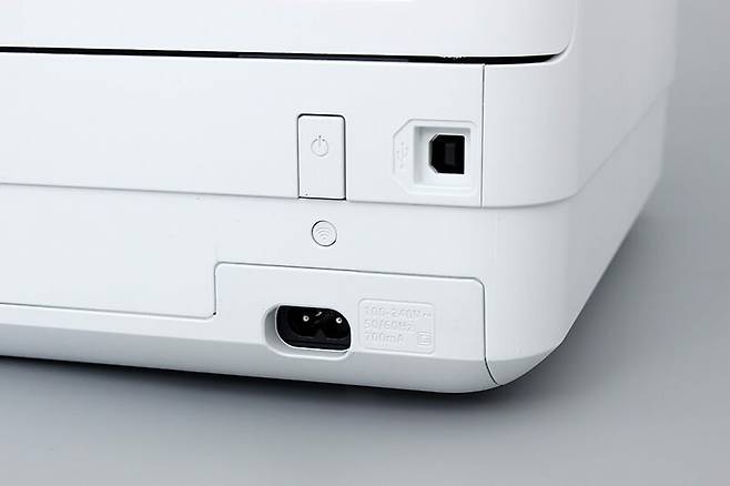 본체 뒷면도 올 화이트 컬러로 깔끔한 느낌을 주며, 뒷면 중앙에는 모델명과 시리얼 넘버 등이 인쇄된 스티커가 부착되어 있다.