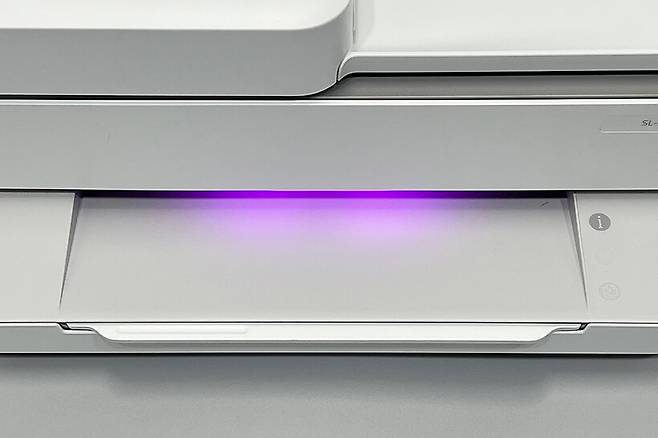본체의 전원을 켜면 앞면의 출력 용지대 바로 윗부분이 녹색으로 빛난다.