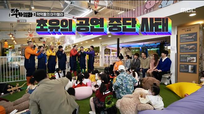 23일 오후 방송된 MBC '악카펠라'에서는 도레미파(김준배-오대환-이중옥-현봉식-이호철-최영우-던밀스)가 키즈카페 데뷔 무대에 이어 '전주국제영화제'의 개막식 축하 무대를 위한 지옥훈련에 돌입했다.