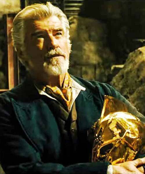 <블랙 아담> 영화에서 피어스 브로스넌의 연기로 선보이는 닥터 페이트는 황금빛의 반짝이는 금속 헬멧을 쓰고 있는 것이 특징이다.