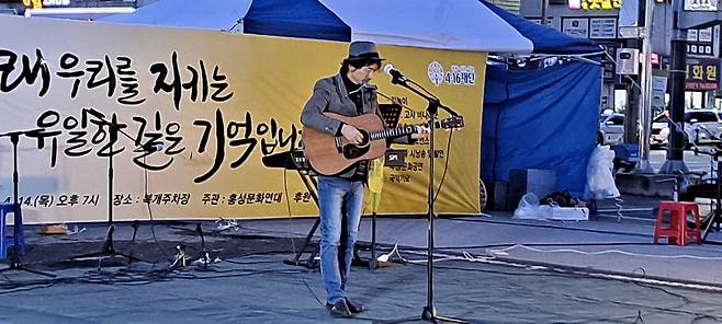 | ▲ 세월호 가수 신재창씨가 노래를 하고 있다. |