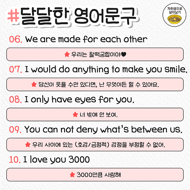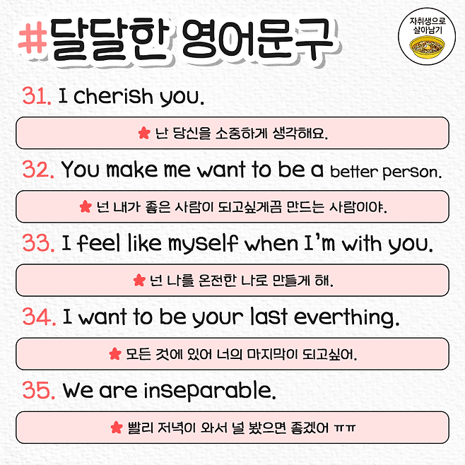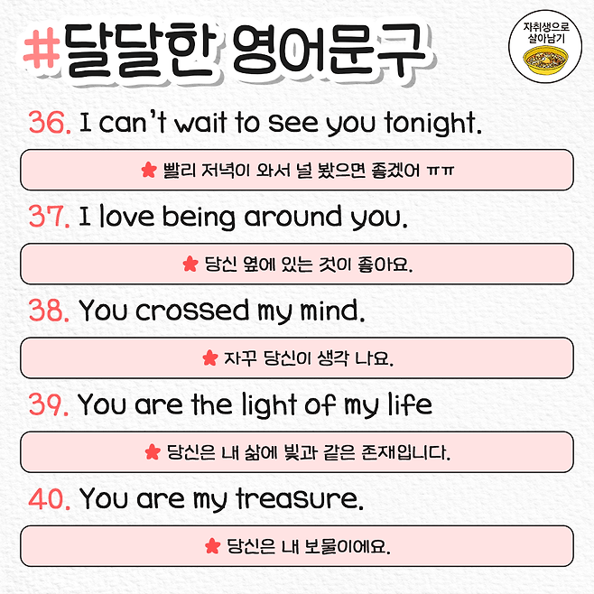 편지에 써 주기 좋은 로맨틱한 영어문장 모음