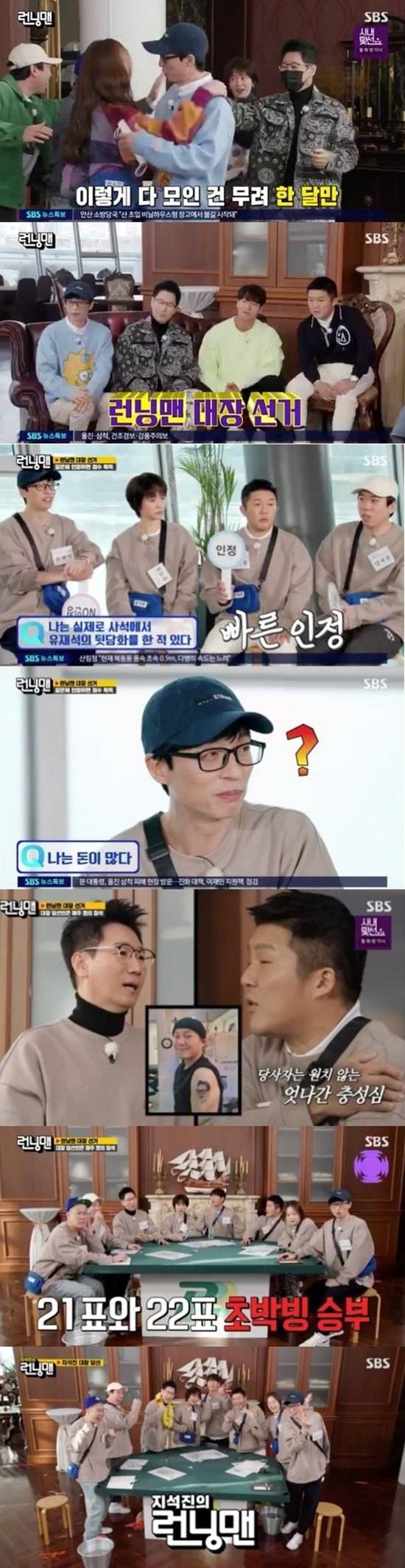 결국 최종 투표에서 조세호의 몰표로 인해 지석진이 한 표 차이로 하하를 제치고 ‘런닝맨’ 대장에 당선됐고, ‘지석진의 런닝맨’ 시대가 출범했다.
