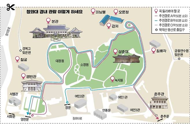 주변 상권도 들썩이는 분위기다. 개방에 앞서 만난 인근 카페 주인은 “이만한 관광상품이 있겠냐”며 함박웃음을 지었다. 정부는 이달 22일까지 주 5일(일·월 제외) 오전 7시부터 오후 7시까지 하루 최대 3만9000명의 관람객에게 청와대를 개방할 계획이다. 서울시는 청와대 인근 주요 6개 역사를 순환하는 시내버스 1개 노선(01번)을 신설했다. 네이버와 카카오는 그동안 보안을 이유로 산으로만 표시해온 청와대 지도를 이날 처음으로 공개했다.
