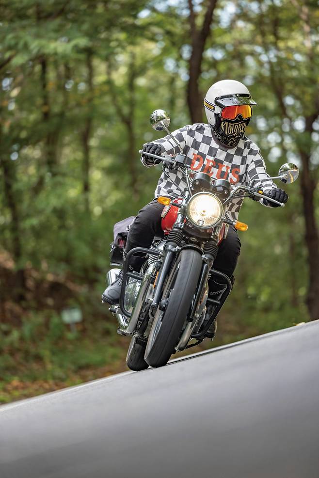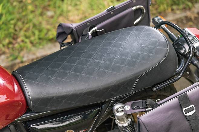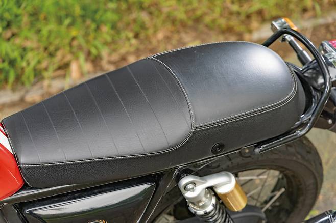 낮은 회전수부터 분출되는 도톰하고 일정한 토크가 즐겁다. 좌우 슬라럼 구간에서 몸놀림이 예상보다 가볍고 라이더의 의도대로 움직인다. 급격한 제동으로 프런트 포크를 누르고 선회를 시작하고 코너를 탈출하는 감각이 자연스럽다. 5,000rpm을 넘어가면서 생기는 자잘한 진동과 빠른 박자의 공랭 배기음도 재미 요소다. 중저속 rpm 영역을 사용하는 토크풀한 주행과 다른 매력이 있다. 1단 기어에서 클러치를 사용하면 윌리도 구사할 수 있다. 클래식바이크에 어울리지 않는 기술이지만 프런트가 떠올랐을때 무게 중심이 상당히 안정적이다. 스로틀 반응과 저 회전엔진 안정성이 좋아서 윌리를 유지하기도 쉽다. 전후로 길고 납작한 시트는 원하는 대로 하중을 옮기기 좋은 편이다. 다만 시트 좌우 폭이 좁아 장시간 주행에는 엉덩이가 조금 아프다.