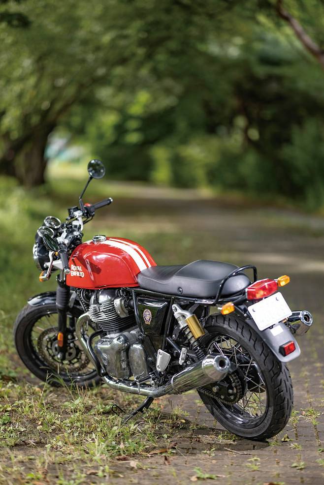 2021년 모델은 전반적인 품질이 개선되었다. 특히 프레임의 페인팅을 비롯한 완성도가 좋아졌다. 이는 생산 품질의 안정화 덕분으로 보인다. 그도 그럴 것이 출시 이후 월 1,000~2,000대 이상을 꾸준히 팔고 있으니 당연한 결과다. 인터셉터와 마찬가지로 타이어가 변경된 점은 아쉽다. COVID-19 팬더믹 상황으로 인도 공장이 없는 피렐리타이어가 수급에 차질을 빚는 바람에 인도 브랜드인 씨엣CEAT 제품으로 변경된 것이다. 로드스터에 비해 더욱 스포티한 주행을 하는 카페레이서에게 타이어는 더 중요한 요소다. 피렐리 스포르트콤프와 유사한 프로파일로 제작해 비슷한 감각과 더 나은 그립을 제공한다지만 타는 사람의 입장에선 묘하게 믿음이 안 가는 것이 사실이다. 더욱이 트레드 패턴 디자인마저 아쉽다. 반면 인터셉터와 GT 모두 포크부츠가 기본으로 장착된 점은 좋았다. 포크부츠는 이너포크에 이물질이 튀어서 생기는 상처를 막아준다. 흔하고 저렴한 액세서리지만 장착하려면 포크를 분리해야 하고 여러모로 귀찮기 때문에 처음부터 순정으로 달려 나오는 건 환영할만하다.