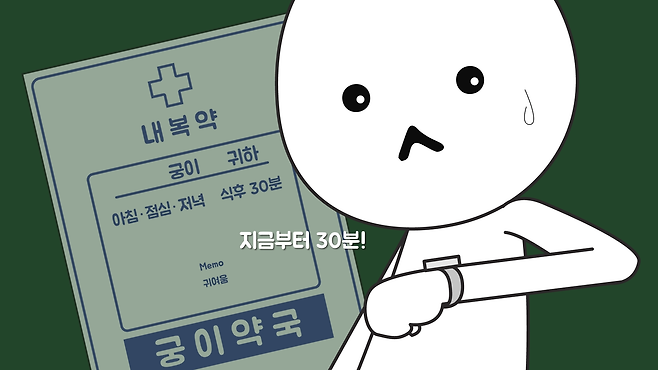약을 먹을 때 식후 30분 후에 먹으라는 소리를 많이 들어봤을 겁니다. 원칙처럼 지켜지는 이야기로 식후 30분이 되기 전에 약을 먹으면 왠지 큰일 날 것 같은 느낌이 듭니다. 그런데 약은 식후 30분 후에 먹어야 할까요? 그렇다면 왜 하필 30분일까요?