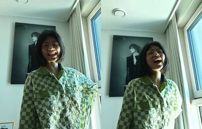 사진에는 잠옷차림의 안영미가 창가에서 환하게 웃고 있는 모습이 담겨있다.