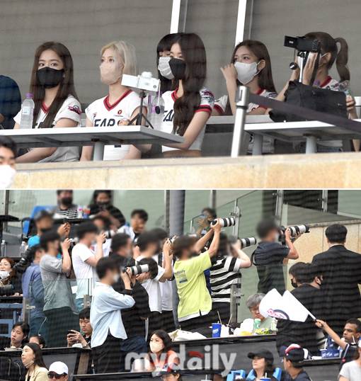 아이브 장원영과 이서는 경기 전 시구 시타를 마친 뒤 멤버들과 함께 포수 뒤 관중석에 앉아 경기를 관람하며 응원하려 했다. 하지만 제대로 볼 수가 없었다. 자신들을 촬영하는 수많은 대리찍사들과 일부 기자들이 앞에 서서 계속해서 카메라를 들이대고 있었기 때문이다. 이들은 야구장을 찾은 아이돌 가수들의 모습을 유튜브로 생중계하기 위해 이런 행동을 했다.